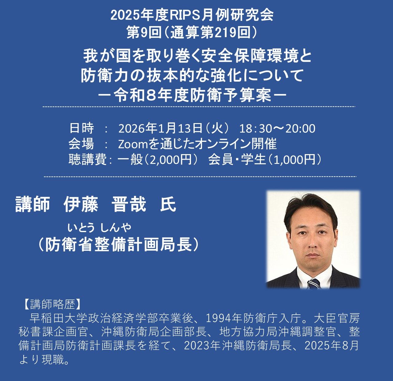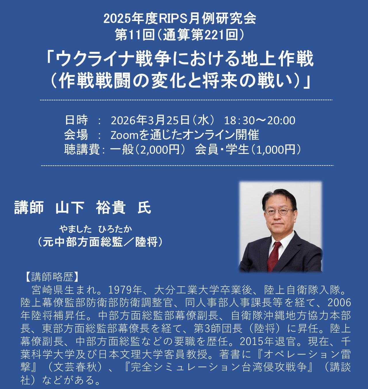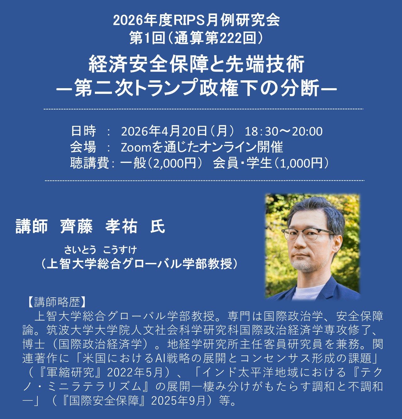 平和・安全保障研究所(RIPS)は、1978(昭和53)年、 猪木正道(元防衛大学校長)、高坂正尭(京都大学教授)などによって設立された独立のシンクタンクです。 調査研究、政策提言、イベント、人材育成、安全保障に関する知識の普及により 我が国の独立と安全に寄与しています。